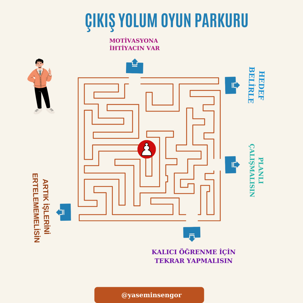 Oyun, özellikle motivasyon kaybı, derslerde performans yetersizliği, verimsiz çalışma ile ilişkili sınav stresi çalışırken bireysel olarak danışanlara uygulanabilecek bir etkinlik olarak da kullanılabilir.