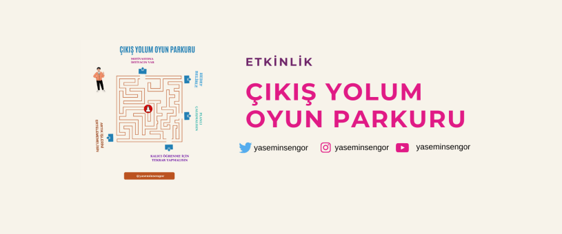 Sınıf etkinliğinde A3 kartonlar tahtaya asılarak ve kurşun kalemle öğrenciden çıkış yolunu işaretlemesi istenerek de oynanabilir. Siyah beyaz baskı ile A4 materyaller sınıfa dağıtılarak psikolojik danışmanın okuduğu öykü üzerinden her öğrencinin çıkış yolunu bulması da istenebilir.