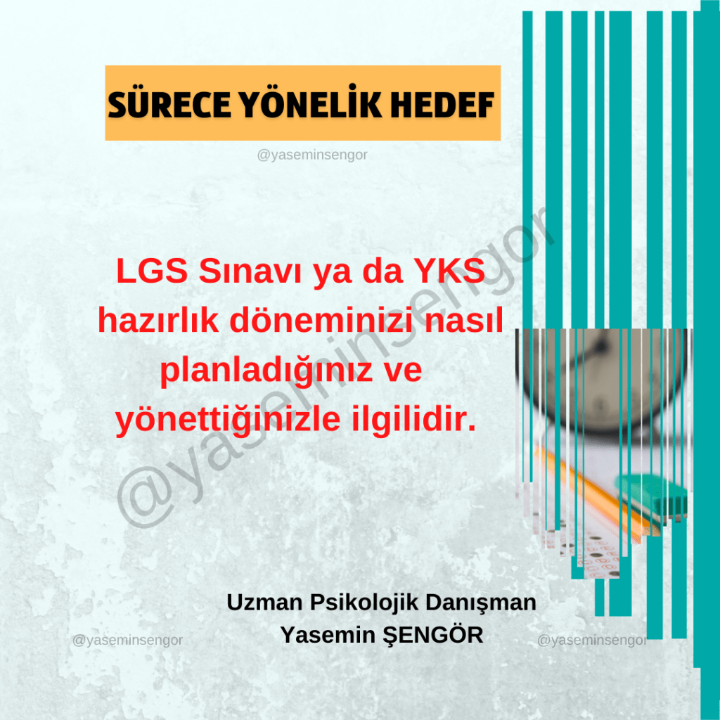 Sürece yönelik hedef, LGS Sınavı ya da YKS hazırlık döneminizi nasıl planladığınız ve yönettiğinizle ilgilidir. Dolayısıyla da sürece yönelik hedefler:
