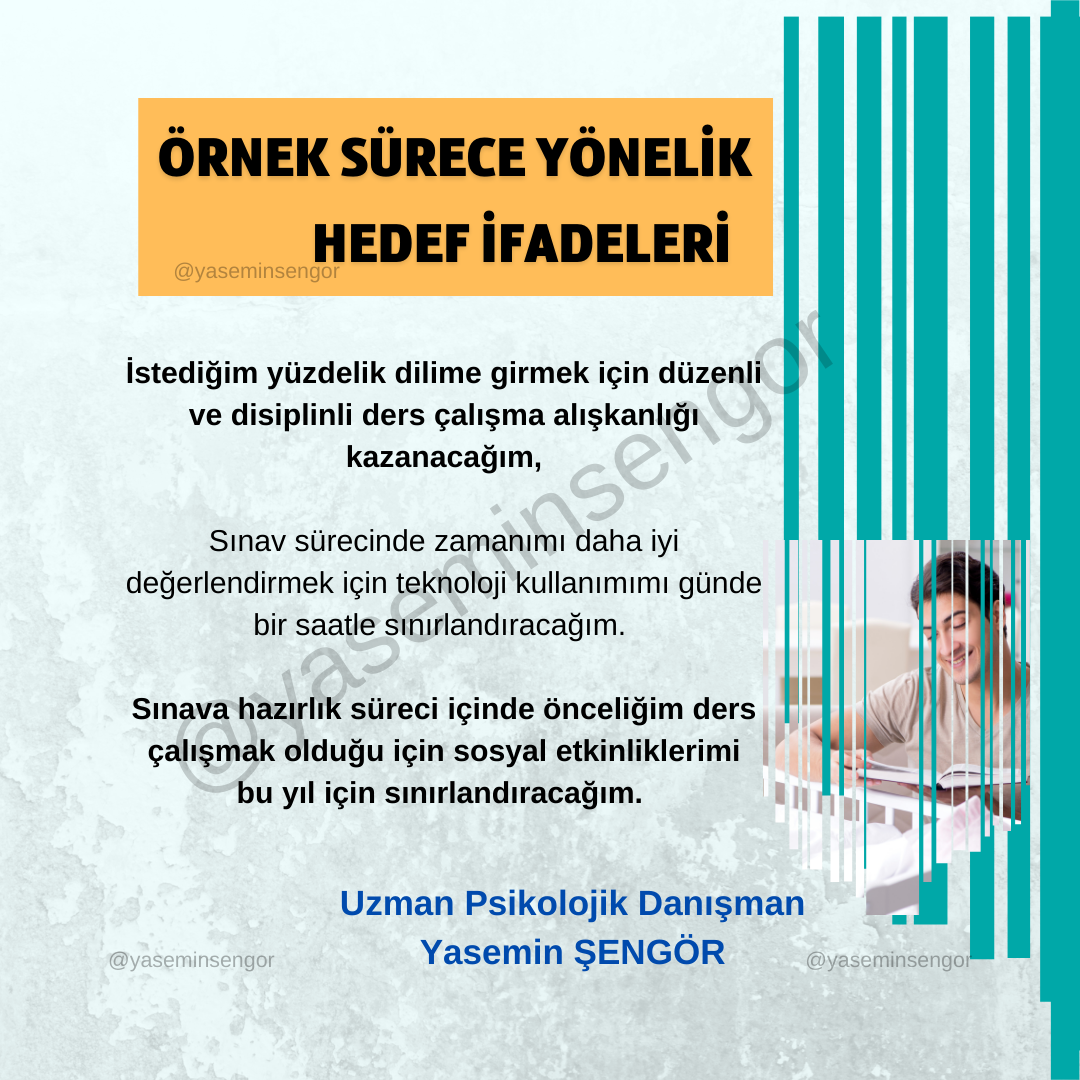 Sürece yönelik hedef belirleme konusunda alanın uzmanları okul psikolojik danışmanlarınızdan destek talep edebileceğinizi unutmayın.
